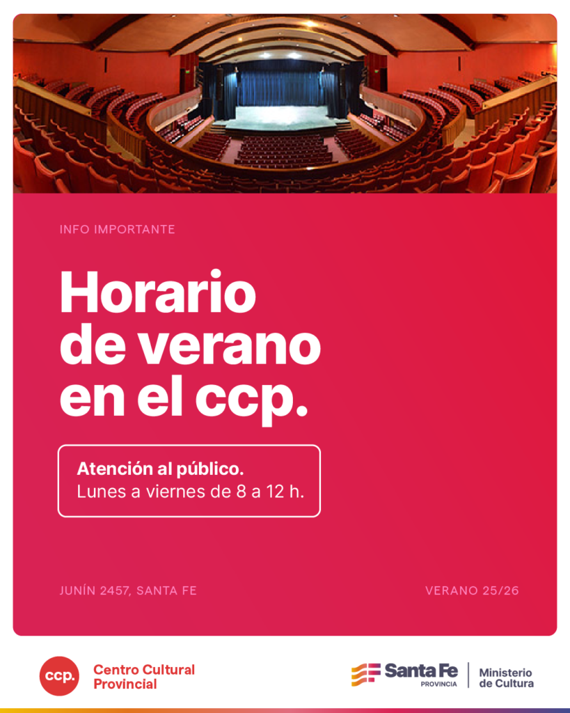 El Centro Cultural Provincial Francisco «Paco» Urondo, dependiente del Ministerio de Cultura de la Provincia, informa que a partir del próximo 2 de enero el horario de atención al público será de lunes a viernes de 8 a 12 h.